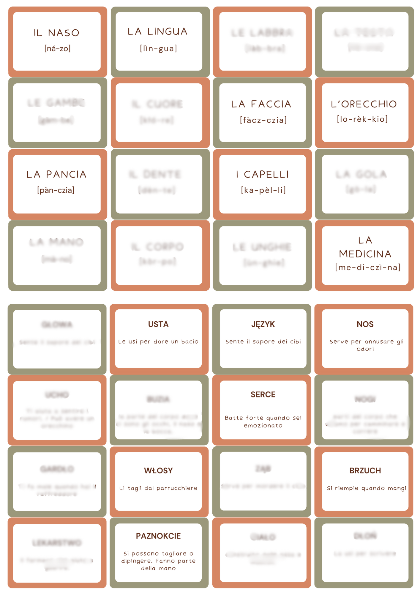 - Zagadka, gra dla +2 osób. Przeczytaj definicję po włosku, aby druga osoba odgadła odpowiedź.